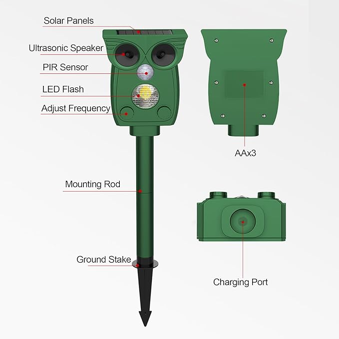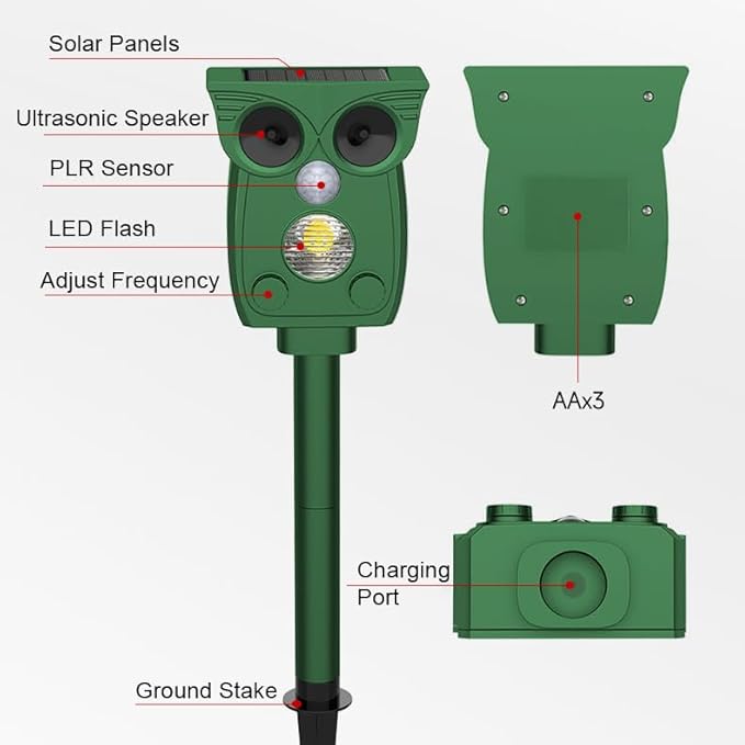 - Multi-Species Protection: Effective against rodents, rabbits, deer; ultrasonic + alarm sound ensures long-term pest control