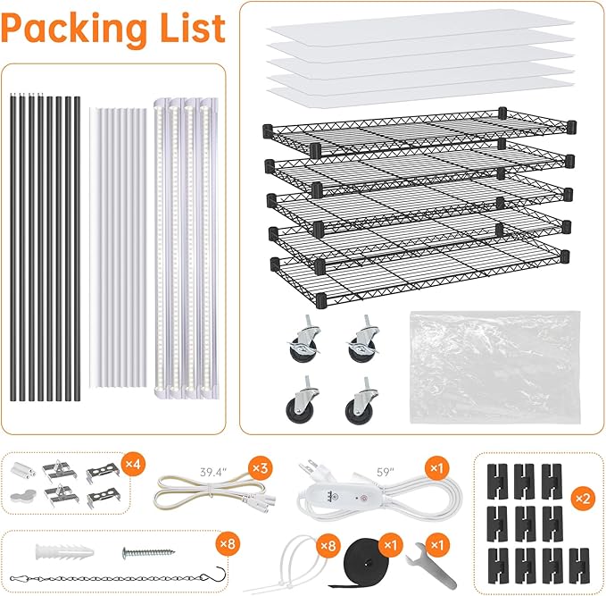 - Spacious Indoor Greenhouse Cabinet - Measuring 59" H x 13.8" W x 29.5" L, this 5 tier grow light shelf provides ample space for your plants. It is perfect for cultivating or showcasing indoor plants such as succulents, aloe vera, and flowers. The plant shelf with grow light provides optimal lighting conditions to meet the growth demands of various plants. The professional grow lights for indoor plants are ideal for seed starting, growth, and flowering stages