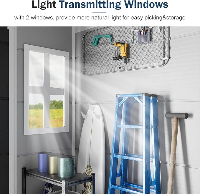- WATER RESISTANT: Resin and plastic mix material with painted outter, make the shed waterproof. All parts are plug in tightly. We also provide silicone sealant to make the panels fit more tight and prevent potential leaks