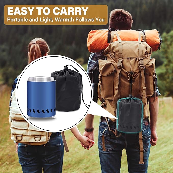 HGD 9.6 x 7.1 in Small Tabletop Fire Pit, Portable Mini Smokeless Table Top Firepit, Low Smoke Camping Stove for Outdoor & Patio, Fueled by Pellets or Wood, with Travel Bag, Stainless Steel, Blue
