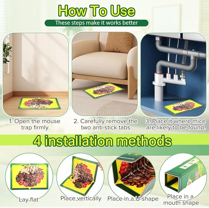 - Sufficient Quantity: you will receive 12 pieces of sticky mouse traps to cover all high-incidence areas of mice β kitchens, basements, attics, garages, and RVs; Sufficient traps can be replaced as needed to effectively monitor and control pest infestations