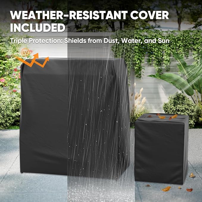 - WEATHER-RESISTANT DUSTPROOF COVER INCLUDED: Keep your patio firepit clean and protected from dust, dirt, rain, and sun with the included durable, weather-resistant cover, helping extend its lifespan. For easy assembly, two or more people are recommended