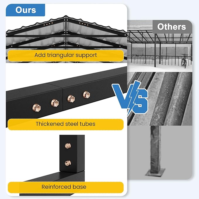 - Easy Installation: YOLENY's carport comes with detailed instructions and video guides. Each accessory is packaged in 9 easy-to-identify bundles. All parts fit seamlessly together, minimizing installation issues and saving you time and effort