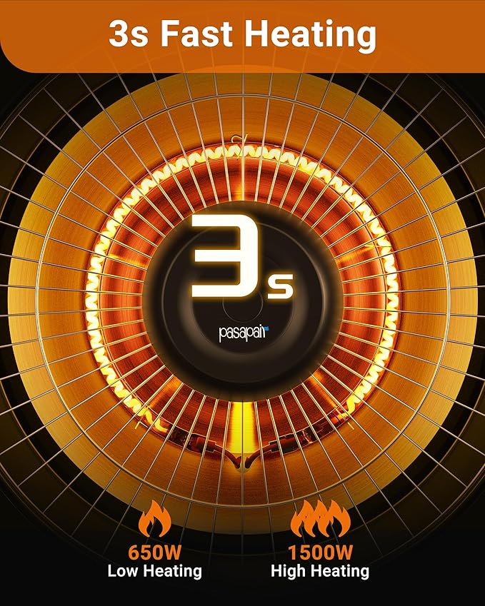 - Effective Heating: You'll feel warm fast as our outdoor heater boasts 2 adjustable heating levels - 650W and 1500W. The tech of 3s Fast Heating keeps you cozy even on cold nights