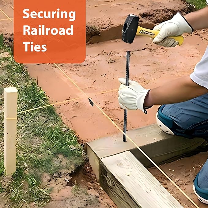 - Myriad of Uses - Perfect length for installing landscape timbers. Used the stakes to keep solar lights straight, holding up border edging or boards used for border. These rebar spikes can be hold with plenty extra above ground to tie anything to.