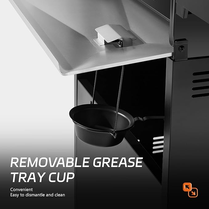 - 【Easy to Clean with Slide-Out Grease Tray】The full-size grease tray that slides out smoothly and built-in drip pan to manage grease and drippings, making after-cooking cleanup fast and hassle-free.