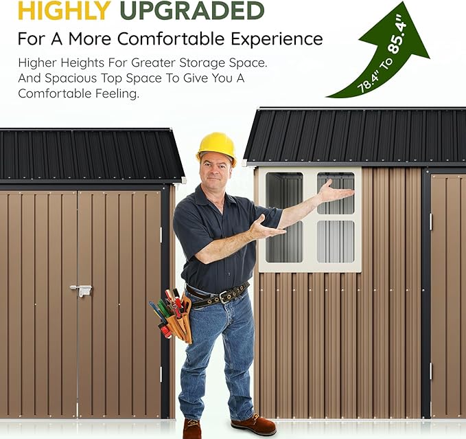 - Durable Construction: Crafted from galvanized steel, this shed is rust-resistant and weatherproof, ensuring long-lasting durability even in tough outdoor conditions.