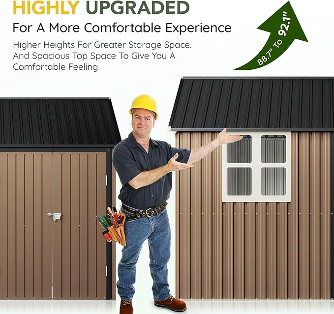 - Durable Construction: Crafted from galvanized steel, this shed is rust-resistant and weatherproof, ensuring long-lasting durability even in tough outdoor conditions.