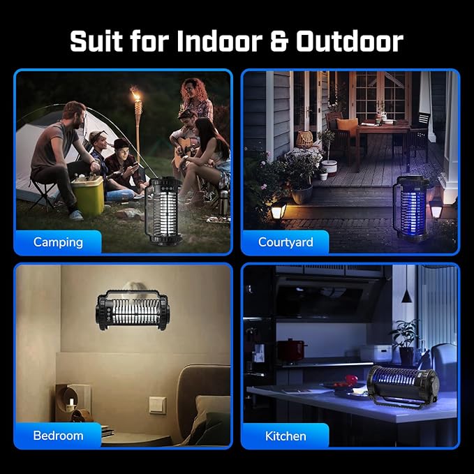 - 【Weatherproof & Multi-Site Use】Designed to withstand adverse weather conditions, this mosquito lamp ensures durability. Featuring a top handle for easy hanging, it can be used in various settings, including yards, balconies, corridors, gardens, pergolas, patios, garages, farms, offices, swimming pools, and more