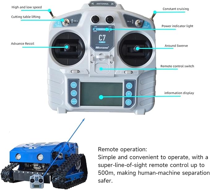 - 【Remote Control Intelligent Operation】 500 meters ultra-long distance wireless remote control, no need to follow the machine. Equipped with a high-performance gasoline engine, it can easily cope with high-density weeds, shrubs and wet grass.