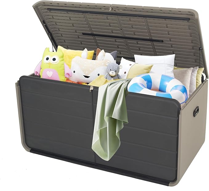 - 【Long Lasting Service Life】With high-density resin material, the waterproof outdoor storage chest prevents rusting, peeling and denting, lasting longer than wood. Moveover, the outdoor storage bin is built-in 3 pcs reinforcing crossbars rods which can prevent deformation after being exposed to the sun