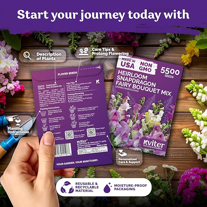 - Generous Mix & Value: 5500 snapdragon seeds bulk fill wildflower-style seed packets, edging paths or small spaces with heirloom seeds that self-sow and return vibrant blossoms next year.