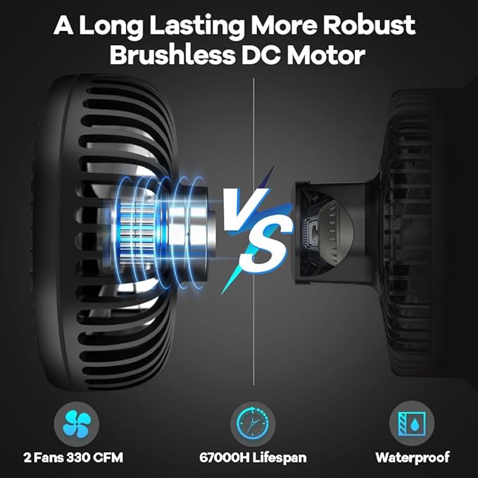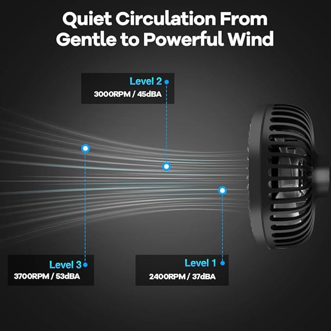 - Strong Airflow with Few Noise: The clip on double fans equipped with a 12W adapter can output max airflow 330CFM 3700 RPM with a few noise of 53dBA. In the lower speed level, the noise decrease to 37dBA. Also itβs IP54 waterproof which can work in a humidity environment.