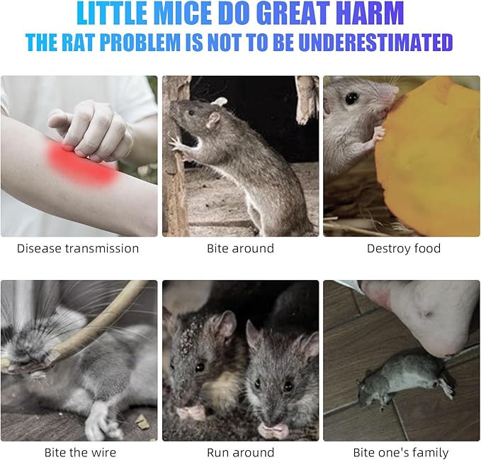 - 🐀【WHOLE-HOME COVERAGE】 Deploy six rodent repellent ultrasonic plug in units across rooms for 360° pest defense. Each device covers up to 800 sq ft, ideal for kitchens, attics, garages, and RVs. Mouse traps indoor for home units 8-31 inches above floor level to maximize wave propagation where pests travel. Combined placement blocks re-entry routes, ensuring thorough protection against infestations.