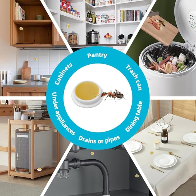 - Easy-to-Use Ant Bait Stations: Simply cut the ant gel bait, attach the double-sided tape, open the lid, and place in ant-prone areas. The bait stations keep the gel secure while attracting ants.