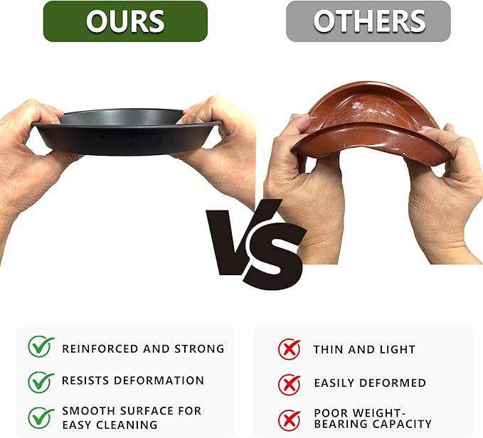 - 【Heavy Duty & Stable Support】 Reinforced with a thick bottom and walls, these water catcher plates can hold ceramic or clay pots without bending. Ideal drip trays for potted plants, balcony gardening, and patio planters.