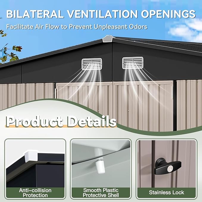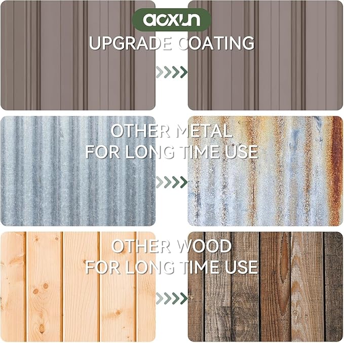 - Premium Durability and Unmatched Weather Resistance: Constructed from high - quality galvanized steel, our tool storage shed is completely waterproof and engineered to withstand the toughest weather conditions, ensuring long - term reliable performance. With a sturdy metal roof and walls, it retains its shape and structural integrity, capable of enduring winds of up to 30 mph (Maximum wind resistance rating: 6) and snow accumulations of up to 6 inches.