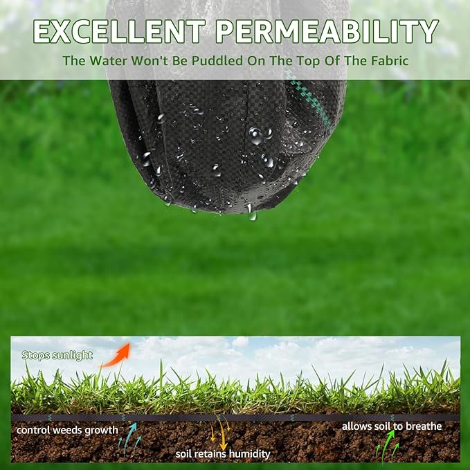 - Weather Proof & Eco-friendly: This weed barrier fabric is made of premium Polypropylene material and high density woven needle punched dual layer design makes this weed fabric weather proof and UV-resistant. Protect your yard's ecosystem and reduce soil erosion.