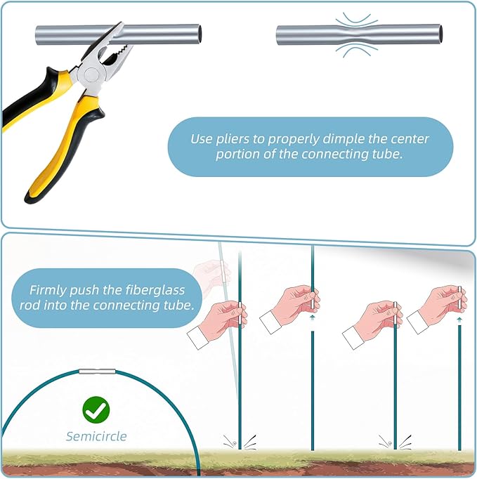 - 【Simplified Installation】 Each 6cm connector slides effortlessly onto 7mm glassfiber stakes. No tools are required: insert stakes into both ends of the plant stake joint for instant extension. The design accommodates angled connections for arched greenhouse frames or straight trellis reinforcements.