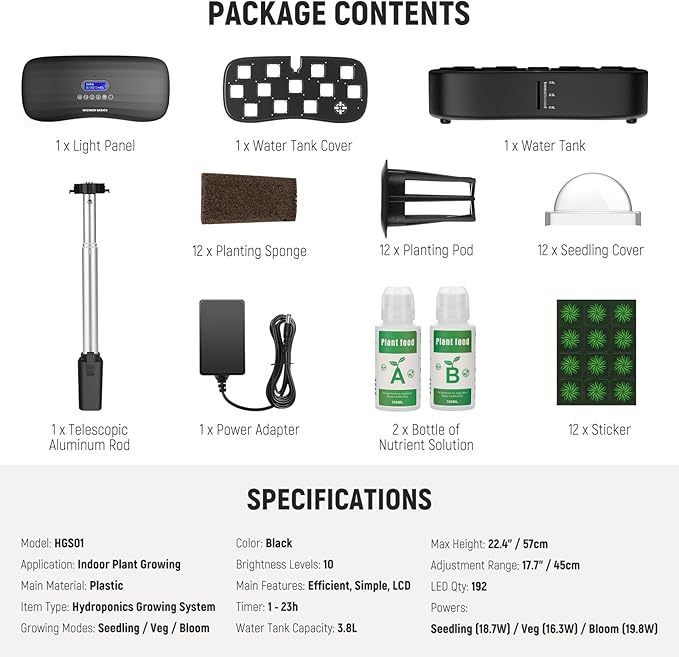 - 【Introducing NEEWER BASICS】 Simple and practical, NEEWER BASICS is an economical product line that focuses on essential functions and designs, without unnecessary extras and materials. The HGS01 is an efficient and simple hydroponic growing system that can nurture up to 12 plants simultaneously, with 3 growing modes, adjustable lighting, and a telescopic design