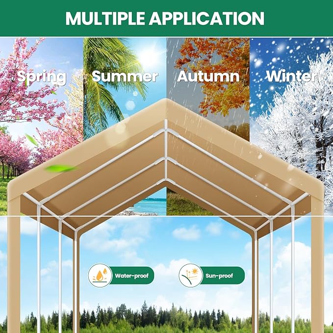 - 【Heavy Duty Structure】 Carport shelter is crafted from a rust-resistant powder-coated steel frame, effectively preventing chipping, peeling, rust, and corrosion. With 8 solid legs made of 1.5-inch galvanized steel pipes, it ensures enhanced safety and stability.