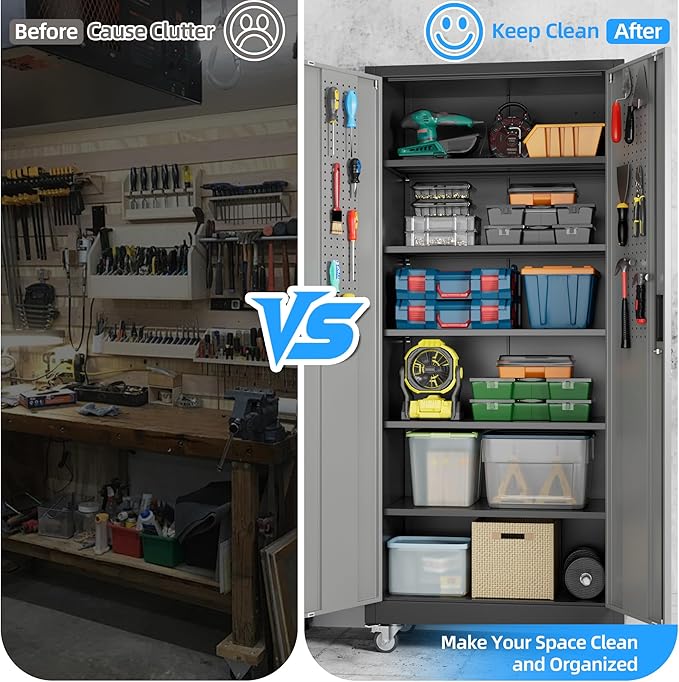 - Widely Use: This metal storaeg cabinet with wheels.The steel cabinet with doors and shelves can be used in garage, laundry, office or any place where additional storage is required.