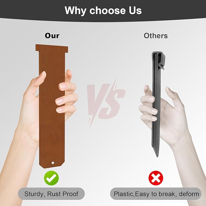 - Simple Installation in Seconds:Press into soil deeply for instant hold. 8-inch length optimizes stability for both edging heights