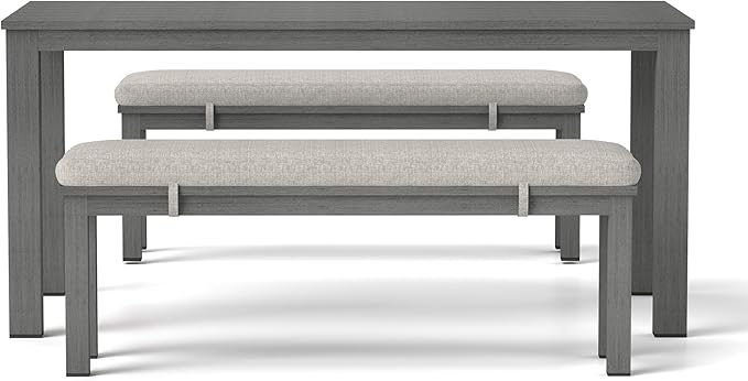 Aluminum Patio Dining Sets, 3 Pieces Patio Table Set, Outdoor Dining Table with 2 Bench, Outdoor Patio Dining Furniture Set with Removable Cushion for Lawn, Garden, Backyard, Grey