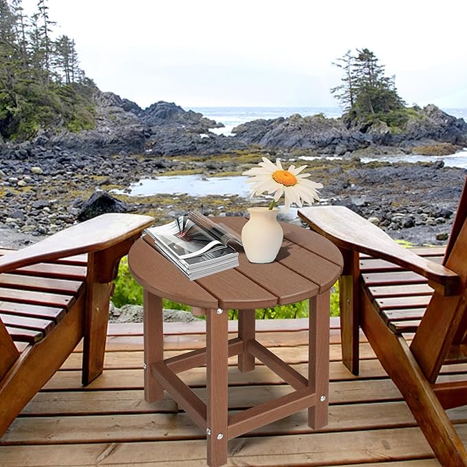 LZRS Round Adirondack Patio Side Table End Table, Outdoor Side Tables for Patio, Backyard,Pool, Indoor Companion, Easy Maintenance & Weather Resistant(Brown)
