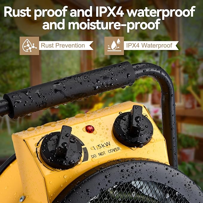 - Built-in Safety with Overheat Protection: Includes automatic shut-off for overheat, enhancing safety during operation. This greenhouse heater is designed for secure use in greenhouses, patios, and other covered outdoor settings.