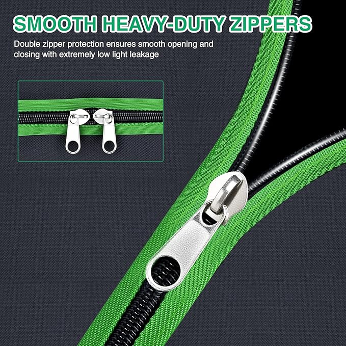 - PREMIUM LIGHTPROOF FABRIC: This Yesker 4x4 grow tent is made of high-quality 600D Oxford cloth and double-stitched, lined with enhanced waterproof PE coating and 100% high reflective aluminum film, multi-layer fabric and double zipper protection to prevent light from entering the tent, effectively blocking all light leakage, maximizing efficiency and promoting healthy plant growth