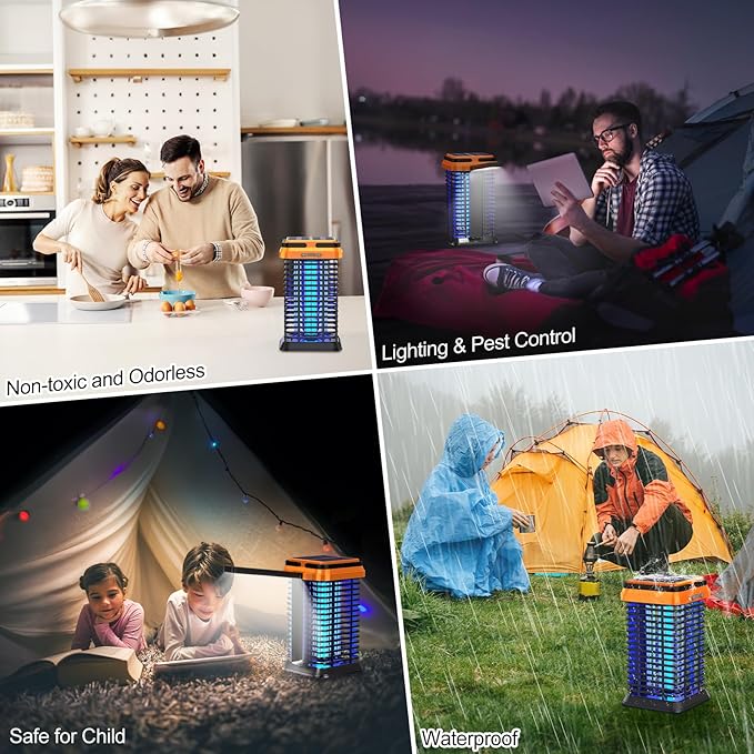 - [2-in-1 Reading Lamp & Bug Zapper] This Mosquito zapper not only serves as a mosquito trap but also offers two lighting options: white and attractive light. The LED lights come with two brightness levels, making them perfect for nighttime sleep, camping, or backyard use. It is also ideal for illuminating and attract mosquitoes during outdoor activities such as fishing or camping. Whether indoors or outdoors, enjoy mosquito-free and brightly lit moments for reading or gatherings!
