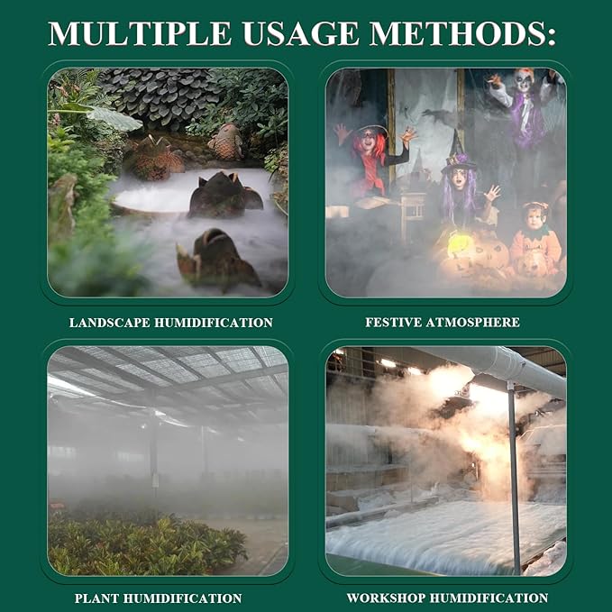 - Versatile Applications: Ideal for gardens, ponds, fountains, rockeries, Halloween/Christmas decor, and even humidifying vegetables, fruits, or greenhouses—creating a misty, enchanting atmosphere anywhere!