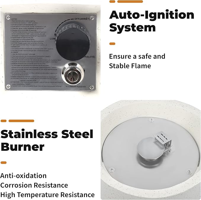 - 【Powerful 50,000 BTU Heat with Enhanced Safety】Stay cozy with a gas firepit for outside patio delivering 50,000 BTUs of heat. Equipped with electronic auto-ignition and emergency auto-shutoff, this CSA-certified propane fire pit table ensures safe, worry-free use, ideal for a patio fire pit table or outdoor gas fire pit that extends your outdoor enjoyment into cooler evenings