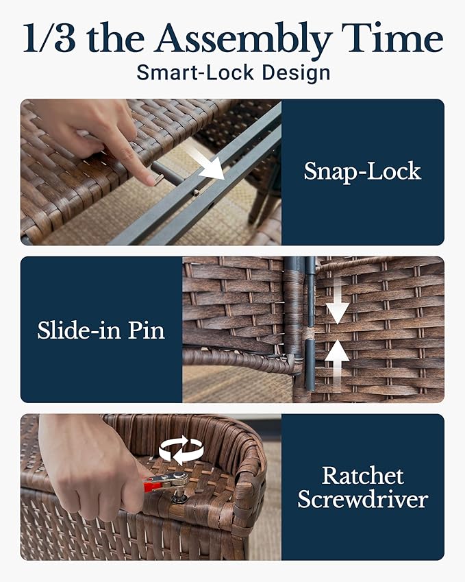 - Unique Quick-Install Design: HILLGA 3rd-Gen upgraded patio furniture uses pin-and-insert structure—each piece needs fewer than 10 screws. Spend more time relaxing in your backyard, garden, or by the pool, and less time assembly
