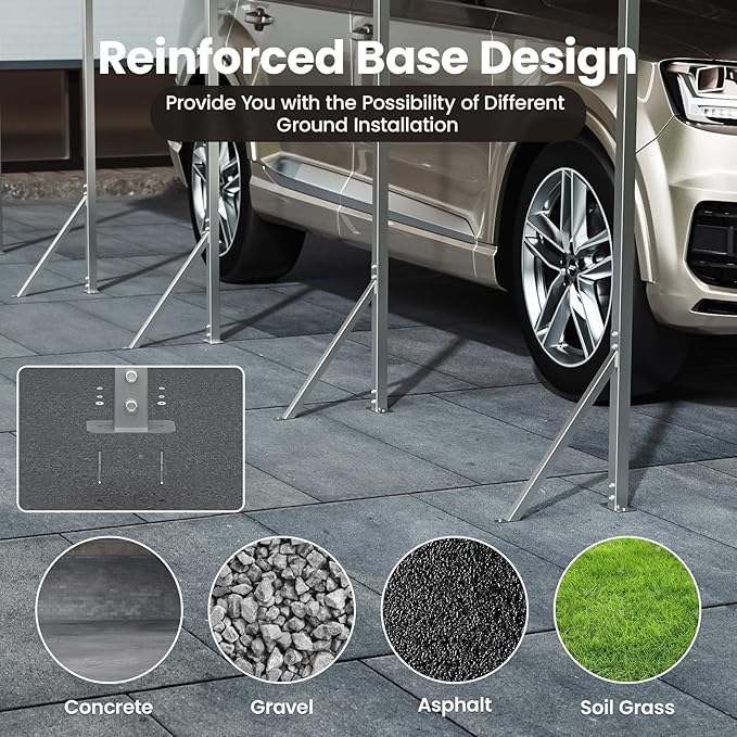 - Durable Steel Construction: This heavy-duty carport is made from premium high-strength steel with a rust-resistant coating to extend its lifespan. It not only withstands harsh outdoor conditions but also provides top-level safety against collapse