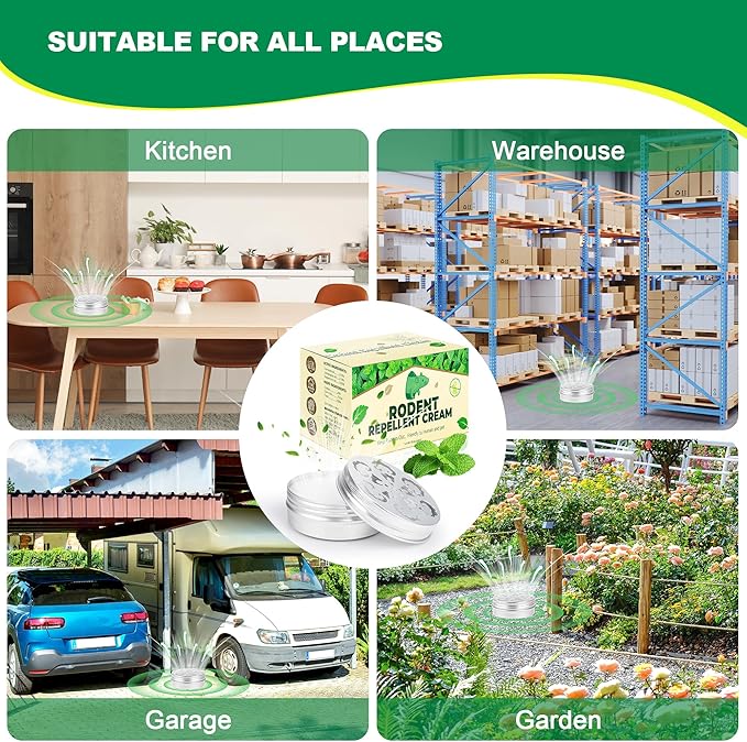- EASY TO USE: Taking out the rodent repellent cream, remove the white protective film from the metal cover and tighten the cover, and then tear off the 3M tape at the bottom and stick mouse repellent where needed.