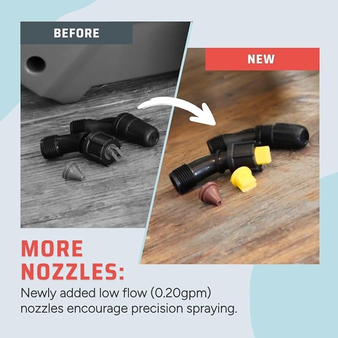 - 4 VERSATILE NOZZLES INCLUDED - Cover a variety of projects with the included TeeJet-style nozzles: 80˚ fan, 45˚ fan, 0˚ pin stream, and an adjustable nozzle.
