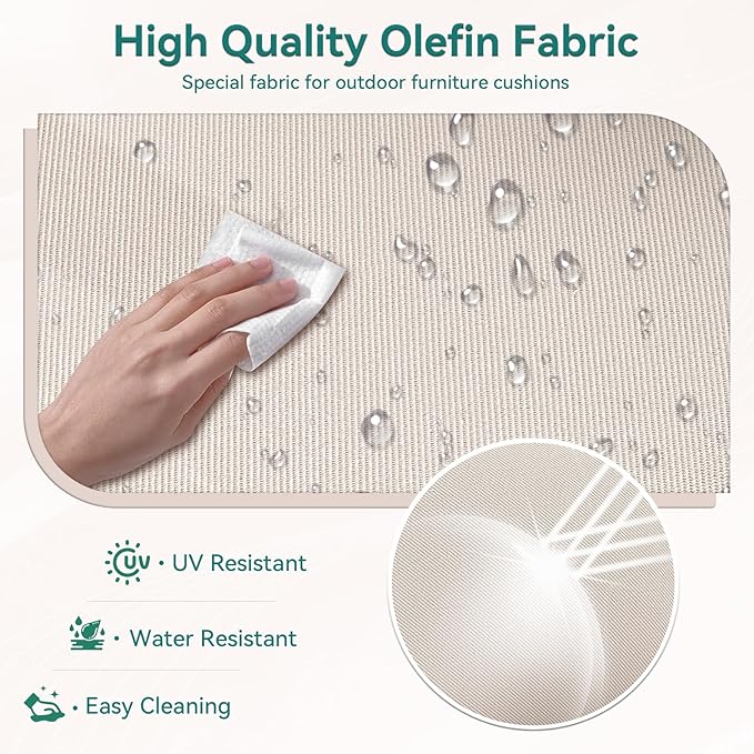 - High Rebound Foam & Thoughtful Details: Filled with a full piece of 28D high-resilience foam, the cushions offer exceptional softness and long-lasting support. Smart design elements include adjustable fixing straps for a secure fit, hidden zippers to prevent water seepage, piped edges for a refined finish, and a convenient handle for easy one-handed transport