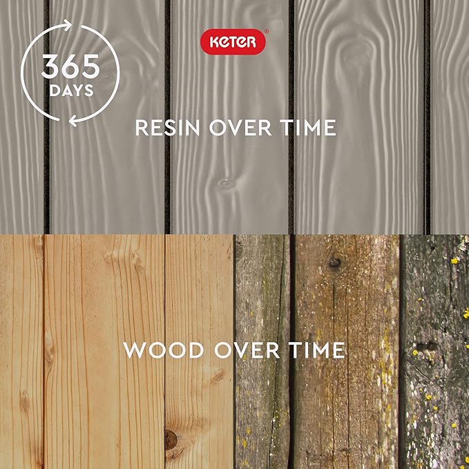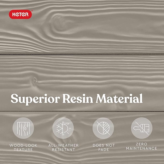 - ALL-WEATHER-RESISTANT: The all-weather-resistant materials make this low-maintenance patio storage easy to use and enjoy for years to come. Unlike real wood, the thick exterior resin prevents rusting, peeling, and denting.
