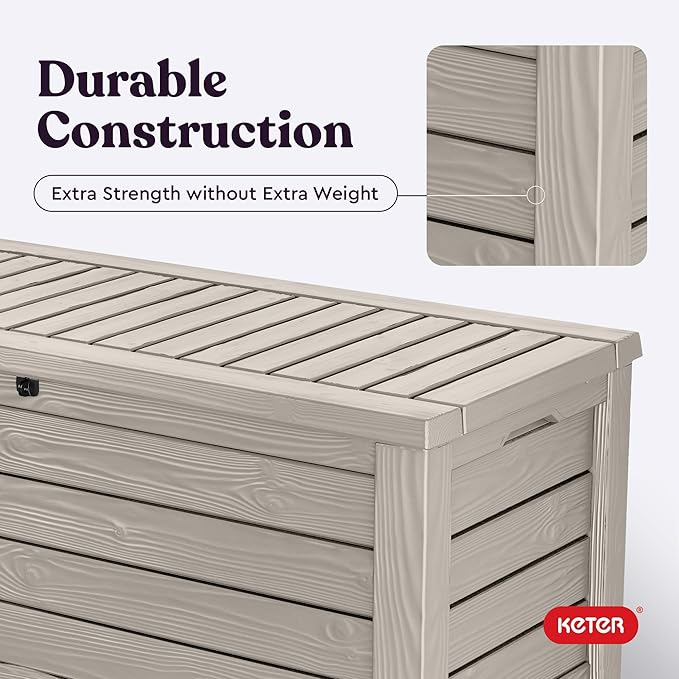 Keter Westwood 150 Gallon Resin Large Outdoor Storage Box for Patio Furniture, Outdoor Cushions, Garden Tools and Pool Floats, Beige