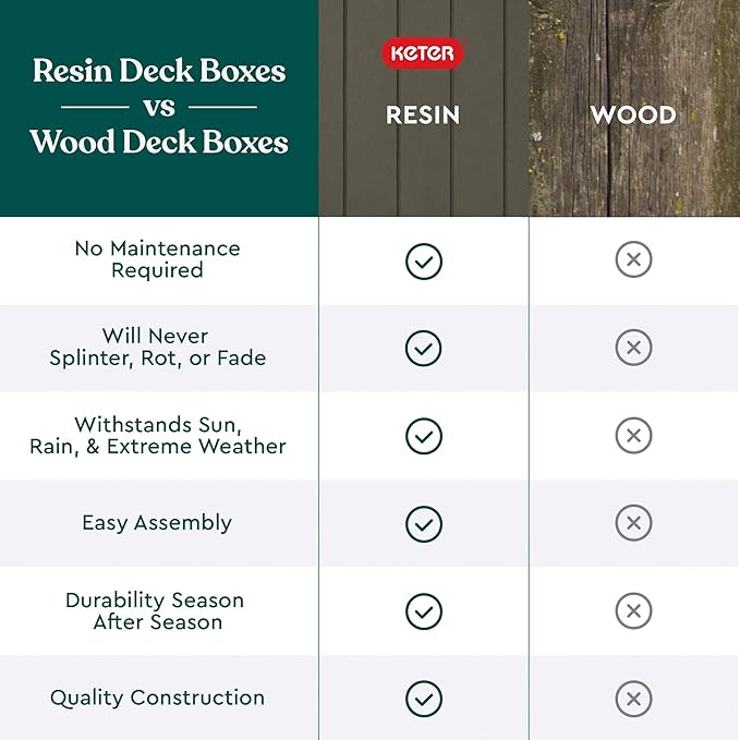 - RESIN CONSTRUCTION: It's made out of all weather-resistant resin with an appealing wood-look texture