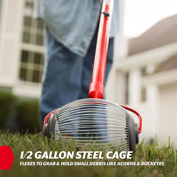 - NO BENDING REQUIRED Easily collect acorns, buckeyes, and other small yard debris sized 3/8" to 3/4" with a simple rolling motion that saves your back and eliminates the need to bend or squat