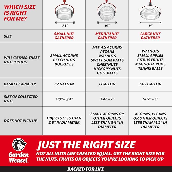 GARDEN WEASEL Medium Nut Gatherer Roller – Nut Collector Tool for Pecans, Hickory Nuts, Golf Balls and More – Yard Picker Upper with Durable Steel Cage and Ergonomic Handle - Newest Model