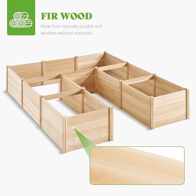 - 【Modular Design】Wooden Raised Bed Kits feature an innovative customizable design, which means you can assemble the kits in a variety of configurations to suit any backyard or garden area, in either a U-shape or an L-shape!