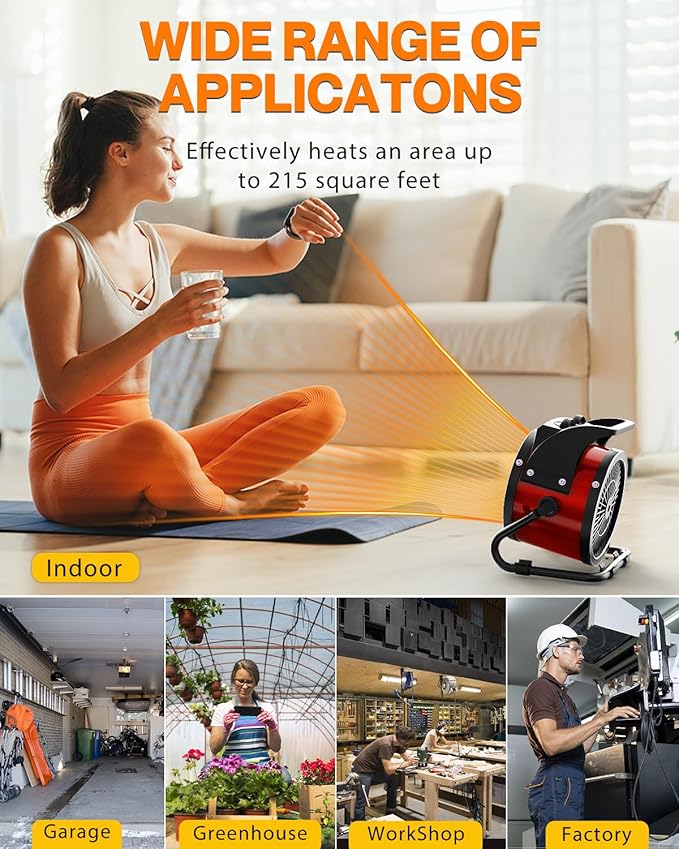 - Crafted for durability and versatility:This durable Outdoor Heater for Patio performs reliably in various environments. A versatile Outdoor Space Heater and Electric Patio Heater, it's ideal for patios, decks, garages, workshops, and greenhouses, providing year-round comfort with resilient construction