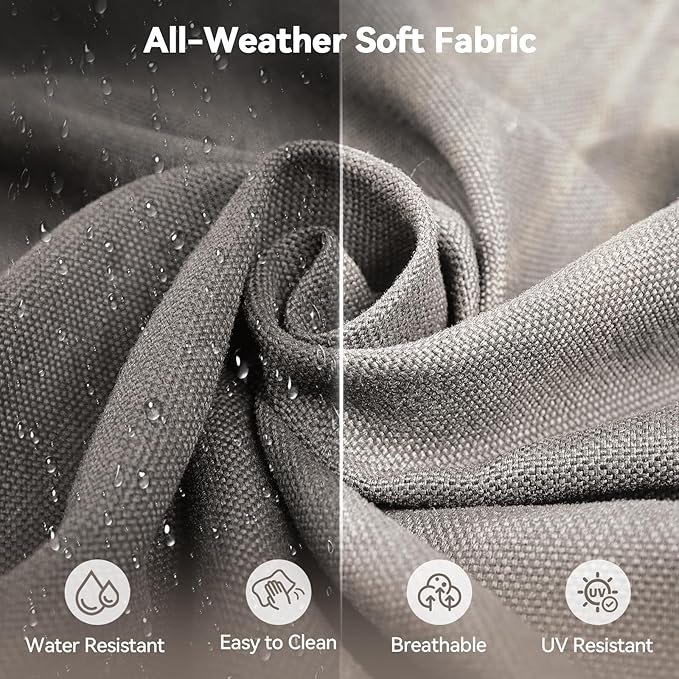 - Weather-Resistant & Fade-Proof Fabric: Crafted from premium solution-dyed olefin fabric, our cushions are built to withstand sun, rain, and wind. The high color fastness ensures vibrant colors even under prolonged UV exposure. The soft yet durable material delivers lasting performance without sacrificing comfort
