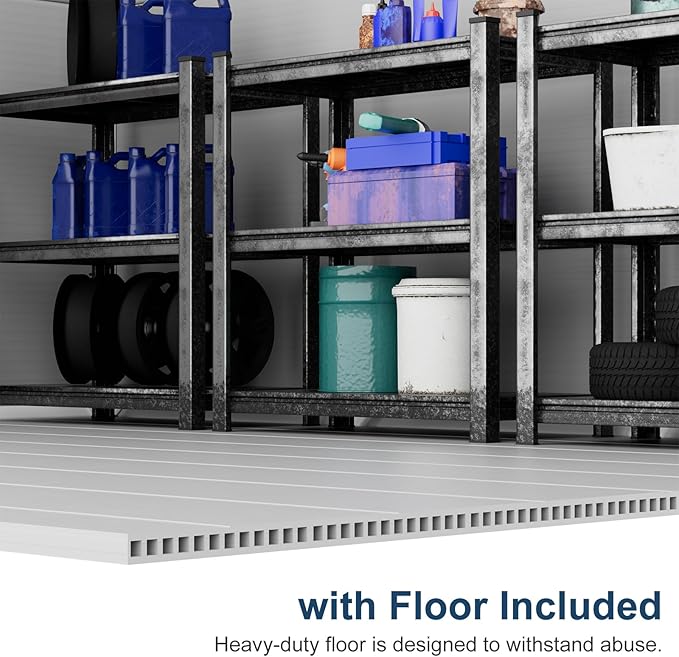 - Floor Inlcuded : Resin shed features a smooth, level floor for easy organization and storage of your belongings.Also included T-Clip wall anchors to support shelves & hangers.