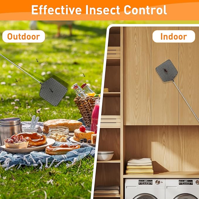 - 【Non-Slip Handle】Mata moscas use high-quality PVC handle enable user easily grasp the handle without falling off, the strap design makes storage convenient.