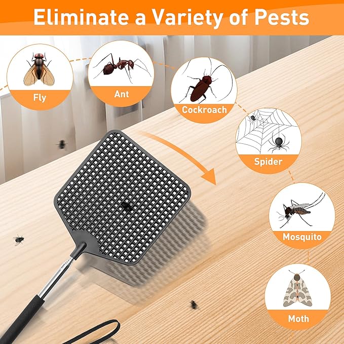 - 【Extendable Pole】Extendable fly swatter boasts a long extendable pole made from Stainless steel, which is durable and sturdy . It may reach 29.1 inches in length and no flies will escape even in far.